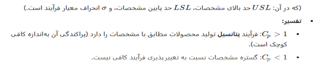 - تعریف: شاخص قابلیت بالقوه فرآیند.
