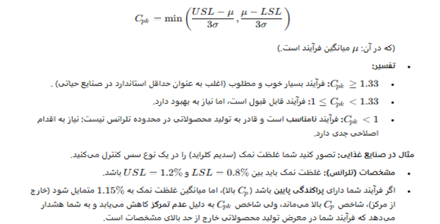 - تعریف: شاخص قابلیت واقعی فرآیند.