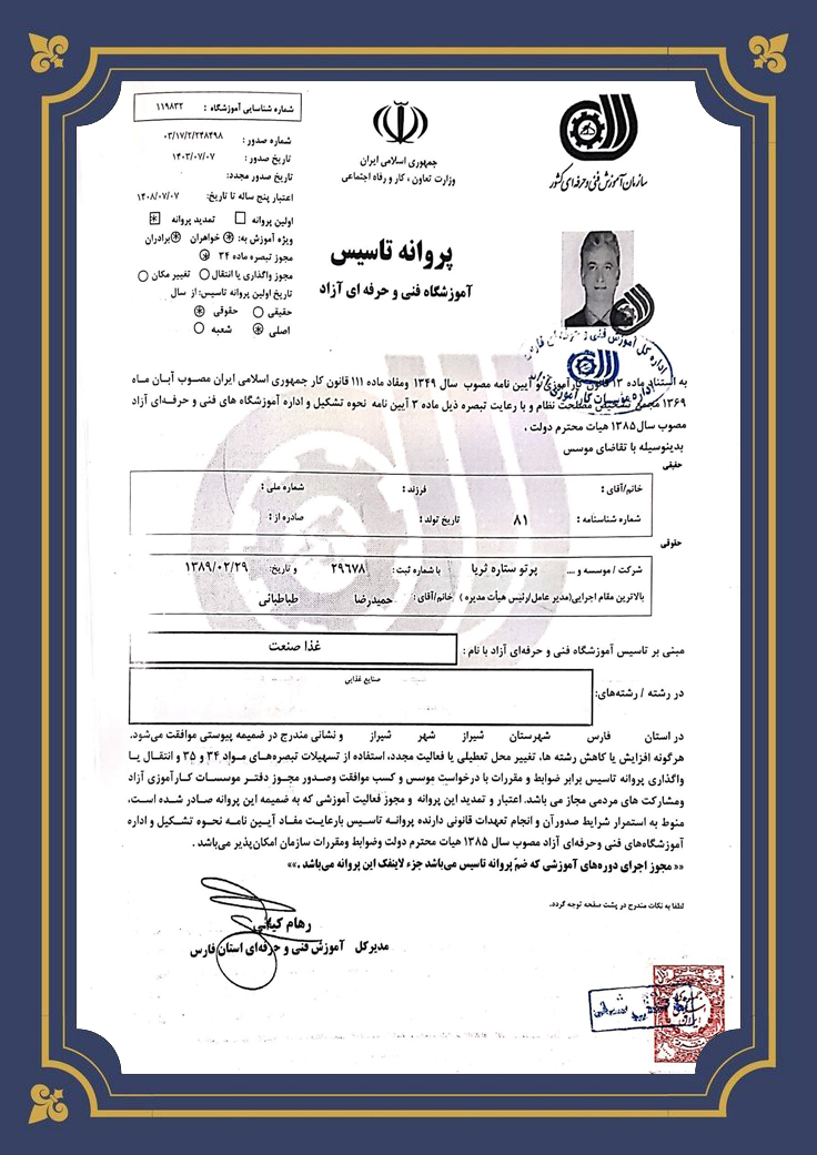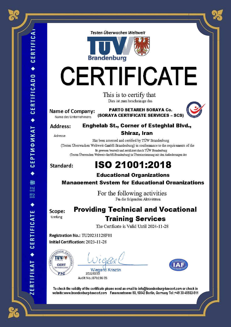 مجوزهای شرکت ثریا / آکادمی ثریا و گواهینامه های مدیریتی دریافت شده