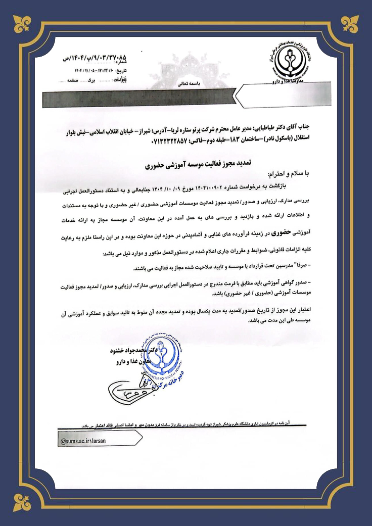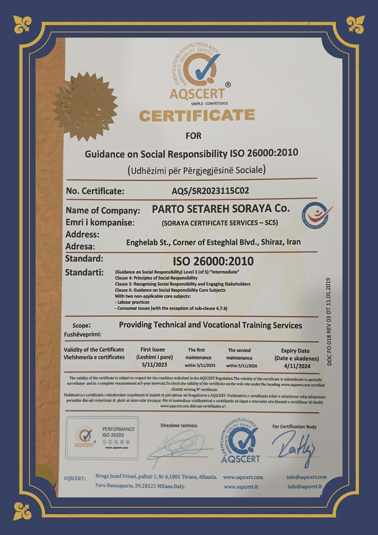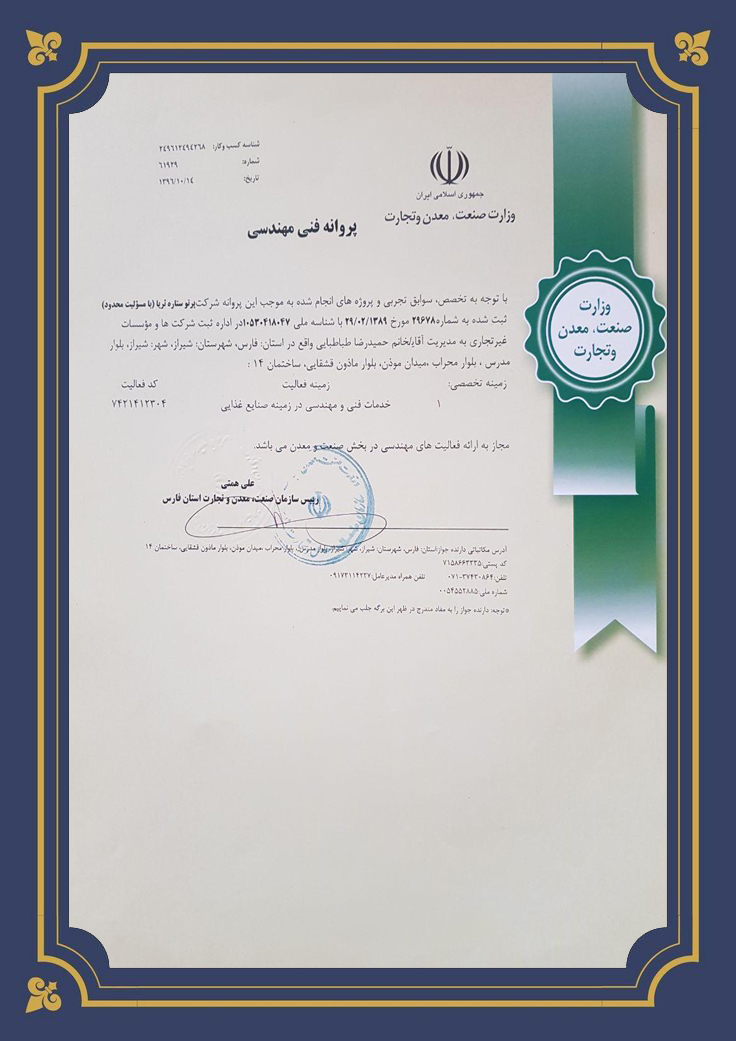 لیست گواهینامه ها و مجوزهای شرکت پرتو ستاره ثریا